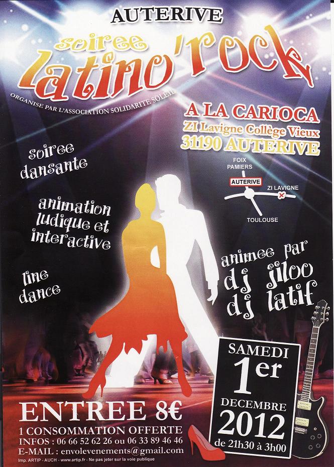 Nous vous proposons une sortie sur Auterive le 1er décembre : soirée ROCK SALSA. Tout le monde est le bienvenue. Covoiturage possible.